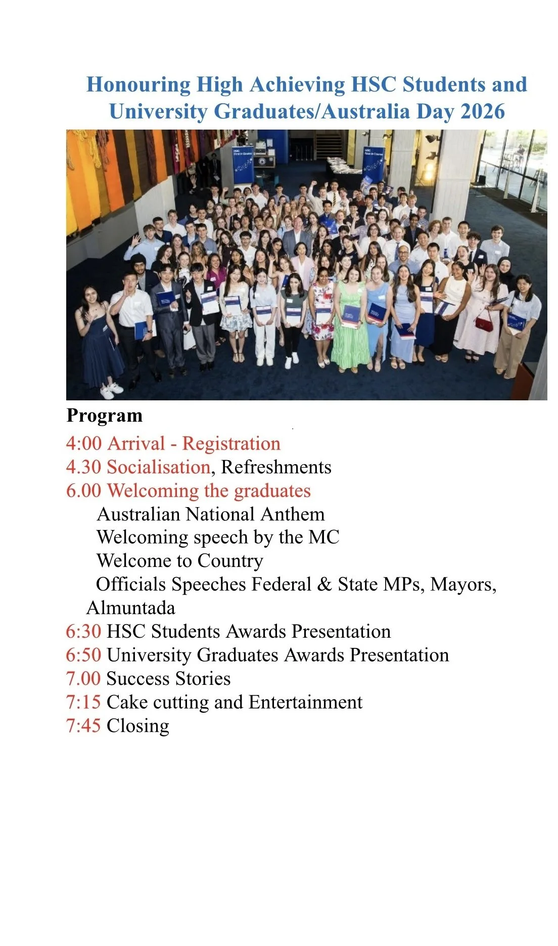2023 Australia Day Celebration & Honouring HSC Students & University Graduates
